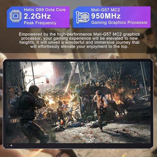 - Powerful Performance: Featuring the Helio G99 CPU with up to 2.2GHz and Mali-G57 GPU, this Gaming tablet offers fast processing and smooth graphics, ensuring a seamless experience for gaming, streaming, and multitasking