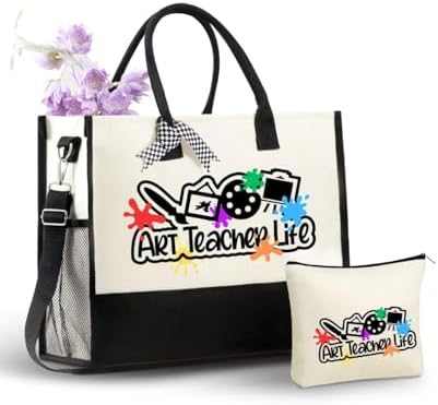 InnoBeta Art Teacher Gifts Canvas Tote Bag for Women, Important Art Teacher Stuff Bag,Teacher Appreciation Gifts for Teacher Appreciation Day, Birthday, Thanksgiving, Christmas
