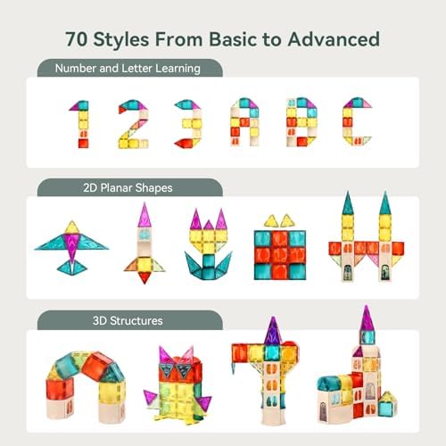 - Strong Magnets: With reinforcement magnets used in all pieces, the building toys offer stronger magnetism design, making it easier and faster to build stronger items that don't easily collapse. The smooth surface with rounded edges and safety magnet materials are safe and harmless for children. It is a perfect gift for preschoolers and great learning gifts