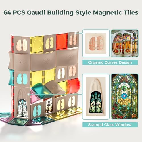- Gaudi Building Style: The Magnetic Blocks for toddlers are a set of colorful magnetic blocks that come in different shapes and sizes, allowing children to create various 2D planar shapes and 3D structures. The magnetic toys include doors, windows, and stairs for building an architecture kingdom. Quality, screen-free playtime allows for interactive parent-child bonding