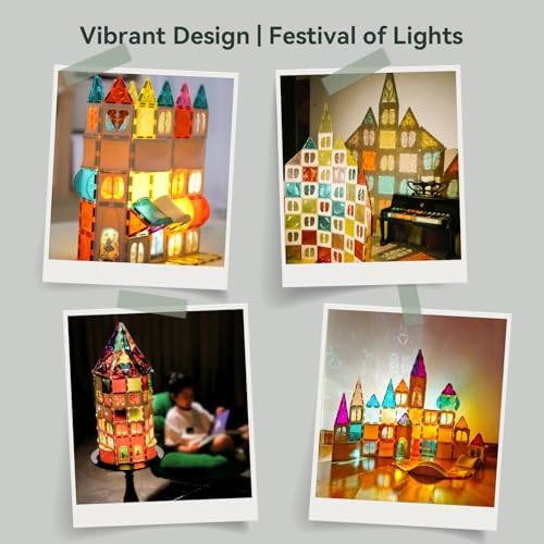 - Vibrant Design: The vibrant colors and high transparency of the tiles create beautiful rainbow-like shadows when exposed to sunlight or light. With its unique diamond face design, the magnetic tiles toy set is both visually appealing and durable. The stem toys comes with an idea booklet to unlock taller and larger structures, stimulating their imagination and problem-solving skills