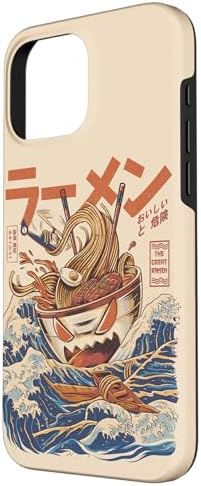 Japanese Anime Ramen design. Beneath the great wave of Kanagawa lives a tasty monster, The Great Ramen! This fun ramen kaiju features a giant Japanese monster ramen bowl in the sea. Retro Japanese poster aesthetic with Japanese lettering.