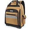 - Great Design Details: The tool bag backpack is equipped with a double slider design zip, which is smooth and easy to use. Reflective strips on the front improve visibility and safety when working in low-light conditions. Electrician backpack with the soft shoulder straps are adjustable, reduce the pressure of the load. And that wear resistant plastic base is durable and sturdy