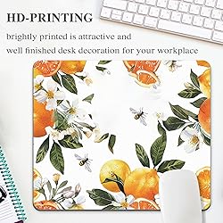 Lemon Mouse Pad White Computer Cute Orange Mousepad Fruit Flower Plant Bee Desk Mat Square Aesthetic Art Office Accessories Watercolor Laptop Wireless PC Travel Decorative Pattern Medium Gaming