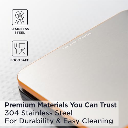 - Durable and Easy to Clean: Made with premium 304 stainless steel, this high-precision scale for food features polished surfaces that resist scratches, wipe clean effortlessly, and won't stain or retain food odors. Wash by hand only; avoid soaking in water or using a dishwasher. For the best care, wipe it with a damp cloth and dry it completely.