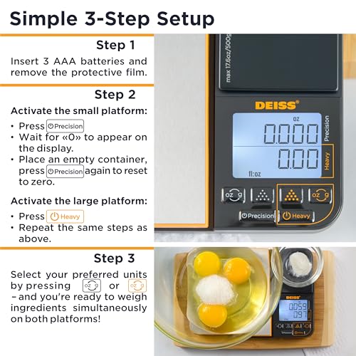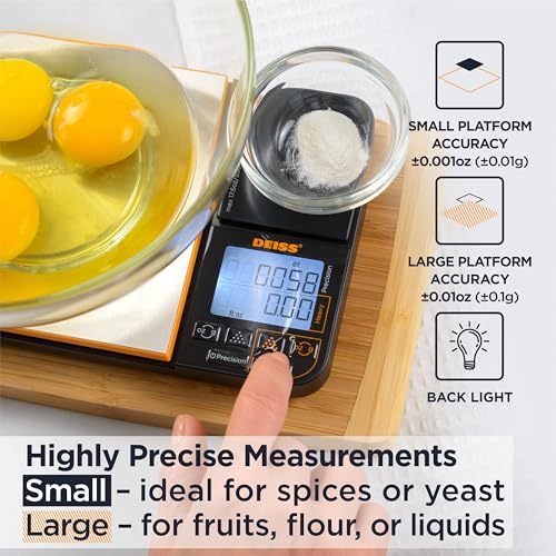 Deiss PRO Dual Platform Digital Kitchen and Food Scale - 11lb Capacity & 17.6oz Capacity Precision Kitchen Scale, Digital Scale for Baking, Cooking, Meal Prep, Food Scales Grams and Ounces
