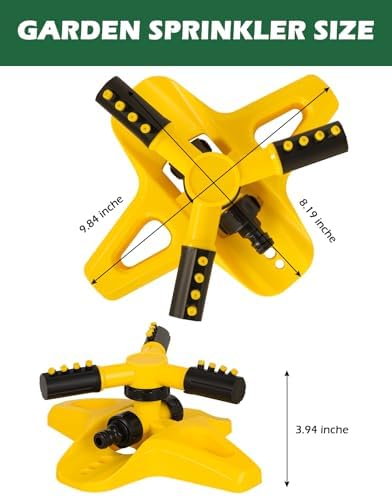 - 🌵《Premium Quality Garden Sprinkler》Three Arm + ABS Plastic Rotary Lawn Sprinkler.360 degree rotating, it is a good helper for your lawn irrigation and garden watering
