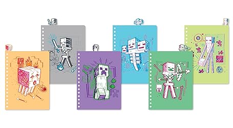- Get into Survival mode with this officially licensed Minecraft spiral notebook to organize all of your notes and Minecraft build ideas. Organize multiple subjects in a single notebook with tabbed divider sections featuring hostile mobs like creeper, skeleton, Wither, and more in this Minecraft-inspired spiral notebook. 192 FULL COLOR PAGES: Fill the pages of the notebook with your notes, builder inspirations, and other thoughts. 6 TABBED SECTIONS: The notebook is divided into 6 sections, each with a different shaped Minecraft plastic mob tab, making organizing and accessing your notes easy and fun. HIGH QUALITY AND FLEXIBLE CONSTRUCTION: This notebook features a durable and wipe-clean plastic cover that’s stain resistant and built to last. Plus, the wire-o binding makes it easy to fold the notebook over when space is tight or lay it flat for easy writing access. 6.5 X 8.375 INCH SIZE: This notebook is the perfect size for note taking or writing and fits easily in a backpack or work bag to take with you on the go. PERFECT FOR STUDENTS AND ADULTS: Whether you are new to the world of Minecraft or a seasoned player like Steve and Alex, this spiral notebook is perfect to use for school, work, or Minecraft adventures.