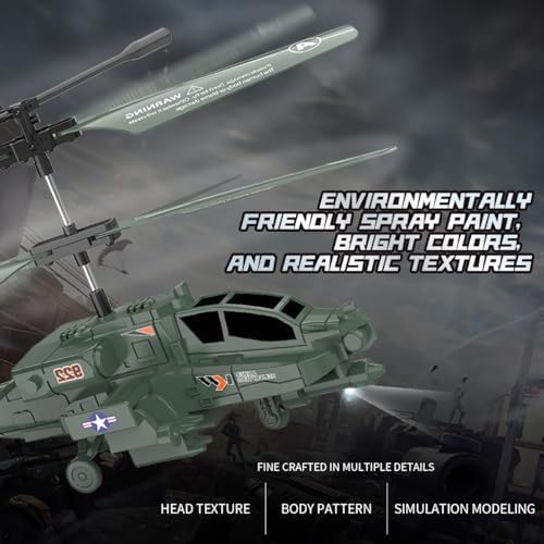Remote Control RC Helicopter for Kids with Light and Sound, Diecast Military Attack Helicopter, Army Style Model Airplane for Military Lovers to Collect and Gift