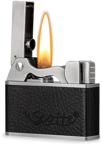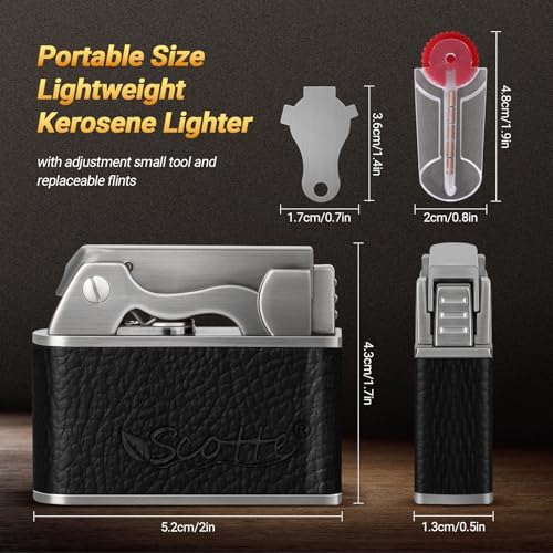 Scotte Vintage Kerosene Lighter, Windproof Soft Flame, Metal and Leather Trench Lighter, Fluid Refillable Pocket Lighters, Easy to Carry and Use, Gift for Father Husband