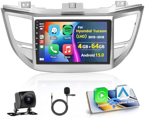 4GB 64GB Stereo for Hyundai Tucson 2015 2016 2017 2018 CarPlay Radio 8 Core Android 15 Head Unit Backup Camera IPS 9 Inch Touchscreen GPS DSP 59UI