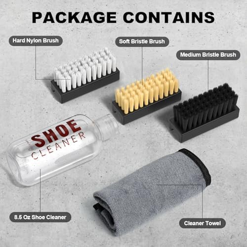 Shoe Cleaner Kit for Sneaker, 8.5Oz Shoe Cleaning Kit with 3 Shoe Brush & Towel, Suede Shoe Cleaner Kit for Sneaker, Suede, Boot, Canvas, PU, Fabric, etc