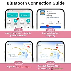 - The app connects and sets up the device in under a minute without any payment or registration required. Create labels quickly and easily. Weighing and measuring only half as much as traditional label makers, it's portable and can be operated with one hand. Snap & Tag app offers over 15 languages, 95 fonts, and 550 materials, all free to use, for easy label customization. It can print various text, numbers, graphics, symbols, logos, barcodes, QR codes, etc. S001 thermal label maker uses thermal technology to deliver high-quality prints without the need for ink or toner. Built-in 2000mAh rechargeable battery provides longer operating times than other brands, saving you time and money. Waterproof, oil-resistant, and abrasion-resistant. No residue remains after removal. Supports continuous label paper (14 mm width) and fixed-length labels (12 x 40 mm).