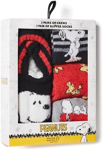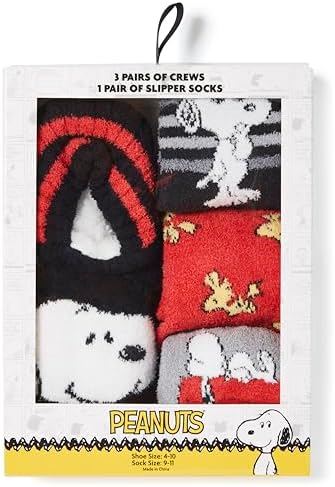 Peanuts Women's Snoopy Classics 4 Pack Crew & Slipper Socks Gift Box