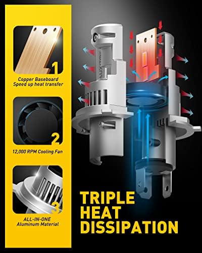 - 【Perfect &Safe Beam Pattern】AUXITO H4 LED has 1:1 halogen beam design and ultra-thin chip copper plate, ensuring 360° full lighting and perfect beam pattern. No dark spots and scattered light, it will not dazzling to oncoming drivers and traffic, keep your night driving much safer