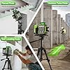- 【Adjustable Brightness Laser level 3 X 360】The laser level provides 3 planes 360° laser light. The top 360° horizontal line is nice for ceiling installation. Two 360° vertical corss lines cross at 90° help quickly visualize and finish square layout. The super bright green laser can be adjusted as your need