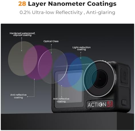 - 28 Multi-Layer Coatings: Multi-coated filter utmost reduce the glaring and flares, waterproof, scratch-resistant, dustproof, and oil-proof, protecting your action camera lens from all-rounds