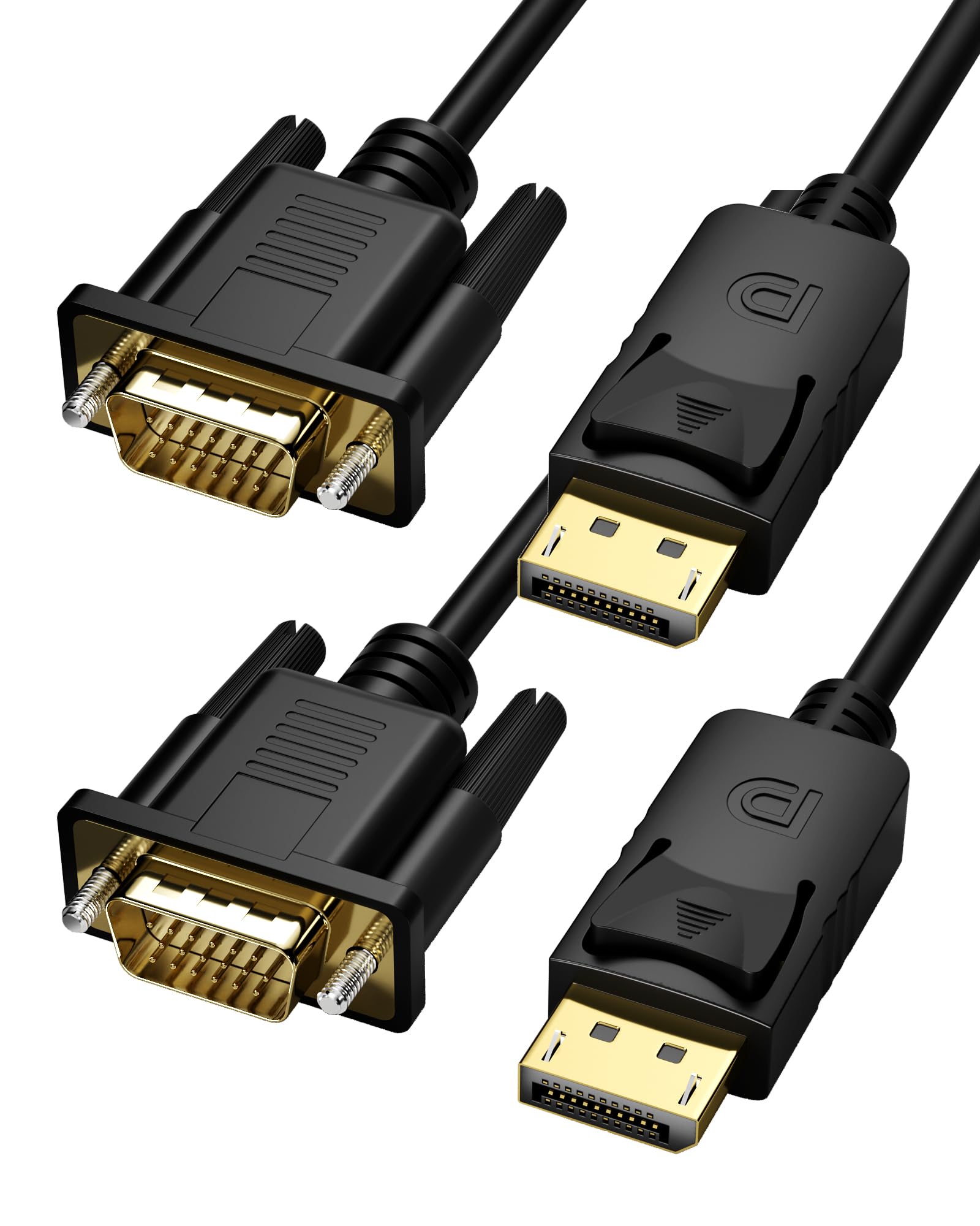 DisplayPort to VGA Cable 3Ft 2Pack and Display Port to VGA Adapter Aluminium Utilizes Better Chip Gold-Plated Connectors Instaneous and Accurate Data Streaming