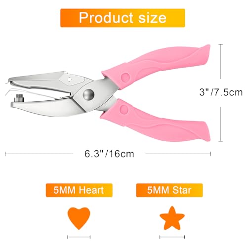 - Product Size:The Handheld Single-Hole Paper Puncher Has 6inch Length, The Hole Punch Star Shape Hole Size Is 5mm; The Heart Shape Hole Size Is 5.5mm.