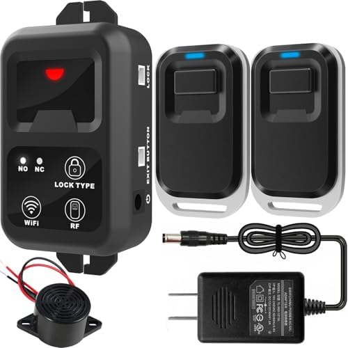 - ✅ The main feature of this kit is that it allows you to open the door simply by pressing the wireless RF remote instead of moving to the door physically when someone visits. The remote communicates with the wireless receiver, which can program up to 40 remotes, and it has a range of 160 feet.