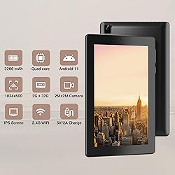 【High Performance】The Digiland Tab A3 7-inch Android tablet is powered by a robust Quad-core processor with 2GB RAM and 32GB ROM, ensuring smooth operation and quick responses. Whether multitasking, running apps, or streaming videos, it delivers a seamless experience without lag. Simply turn it on to load apps quickly and effortlessly, making it a perfect companion for browsing, entertainment, and casual gaming 【Massive Storage】This tablet comes with 32GB of internal storage and supports up to 512GB of expandable storage via a TF card (not included), providing plenty of space for your favorite apps, photos, and videos. Pre-installed with Google Play Store, you have access to millions of popular apps like Netflix, YouTube, Facebook, and more. Whether for work or play, this tablet has you covered 【HD IPS Display】The Tab A3 features a 1024x600 resolution IPS display with wide viewing angles, offering vivid colors and lifelike visuals for an immersive experience. It’s perfect for children’s learning apps, video calls with family, or streaming your favorite shows. Additionally, the screen is designed with low blue light technology to reduce eye strain, allowing you and your family to use it comfortably for extended periods 【Long-lasting Battery with Convenient Charging】The Tab A3 is equipped with a high-capacity battery, delivering up to 10 hours of continuous use and an impressive 45 hours of standby time on a single charge. Enjoy reading, watching videos, or studying online without frequent recharging. Featuring USB Type-C fast charging technology, the tablet can be fully charged in just a few hours, keeping you powered up whether at home or on the go 【Effortless to Use】The Tab A3 offers an intuitive design that’s easy for all ages to use. With a streamlined interface for quick app access, it’s lightweight and portable for use on the go. Perfect for browsing, studying, or entertainment, it ensures a simple, hassle-free experience every time. Enjoy the ideal balance of functionality and convenience