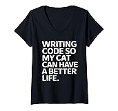 Womens Programmer Cat Kitty Meow Animal Pet Computer Programming V-Neck T-Shirt