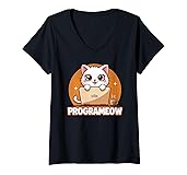 Womens Programmer Cat Kitty Meow Animal Pet Computer Programming V-Neck T-Shirt