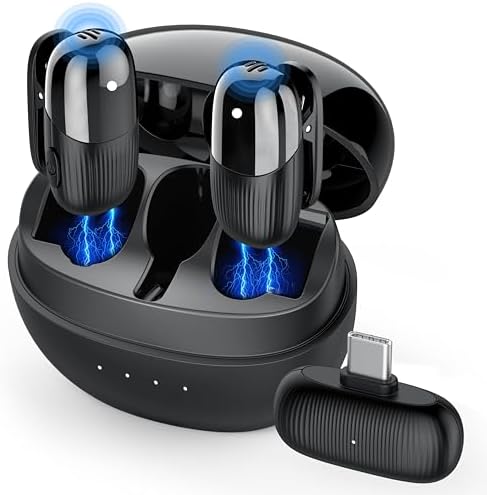 - Portable Mini Wireless Microphone: The lapel microphone wireless features a push-button design and is lightweight and easy to carry. The wireless mic for iPhone weighs only 0.24 oz. The small microphone fits into a compact charging case for easy storage and charging at any time without worrying about power. Great for outdoor recording work, ideal for filmmakers, interviews, video bloggers, and podcasters.