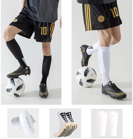 • Three-Piece Set: Get 1 pair of non-slip soccer socks with gripped soles and 1 pair of shin sleeves with protective pads.