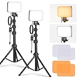 NEEWER BASICS LED Video Light, 2 Pack Studio Panel Key Lighting Kit with Tripod Stands & Filters, Bi Color Dimmable Portable 3200~5600K CRI95 750lux for Photography Recording Streaming Podcast, BP66