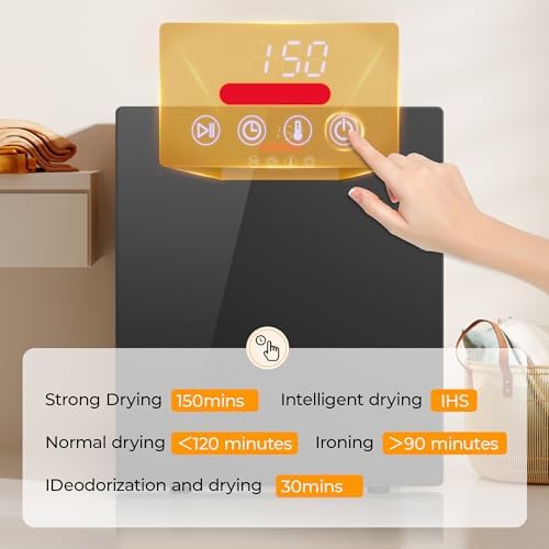 - [4 drying program] This compact dryer has 4 drying programs. Strong drying: Generally used to dry larger size clothing, the red light bar. Intelligent dying: Reduce power consumption, the light blue light bar. In addition to taste dry: remove the smell of clothing(such as clothing storage time is too long to produce the smell), the blue light bar. Normal drying: This mode has two functions of ironing and drying, the green light bar
