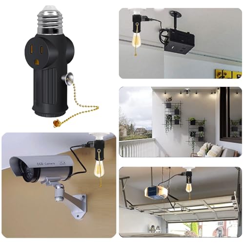 - 【Easy to install and Use】Our light socket adapter uses a stable current supply of 125VAC, the max power of the light socket adapter can reach 1250W. Can provide you with multiple sockets in various scenarios, such as on lampholders in warehouses, garage basements, camping tents, attics, balconies, porches, utility rooms, etc., the light socket to plug adapter can add temporary sockets for you. The light socket to plug adapter is easy and quick to install without any tools. (The power should be turned off first before installation)