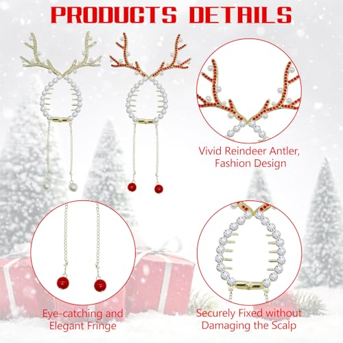 2Pcs Christmas Hair Accessories, Christmas Reindeer Ponytail Bun Holder Claw Clips Supplies, Xmas Hair Accessories for Women, Winter Hair Clip with Rhinestone Pearl Design Metal Hair Clips for Women