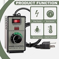- ReeMoo AC motor speed controllers offer precise control and enhanced safety for your electrical equipment. Designed to accurately regulate the speed of various AC motors, these controllers support voltages and currents up to 120V 15A, making them an ideal solution for a range of applications including electric fans and industrial machinery. Specifications: Voltage: 120V Current: 15 Amps Rated current: 10A Features and Functions: Overload protection switch provides overload and short circuit protection, ensuring safety and extending the product's lifespan. High precision digital voltmeter offers clear, eye-catching, and accurate voltage readings. Adjustable settings allow you to choose from low, medium, and high speed options, enabling energy-efficient operation tailored to your needs. Adjustable speed, temperature, and light settings make this controller suitable for a variety of tools and appliances such as electric drills, fans, exhaust fans, angle grinders, blowers, and LED lights. However, it is not compatible with appliances featuring circuit boards like induction cookers, microwave ovens, or LED energy-saving lamps. WARNING: For use with AC motors only. Do not use on DC motors. TIPS: Please Read the Instructions Carefully Before Purchasing. Use within the rated power and voltage range, suitable for AC power grids only. This regulator is not designed for use as a soft/slow start regulator or with inductive transformers. If you are not familiar with the operation, it is best to conduct installation testing under the guidance of a qualified electrician.