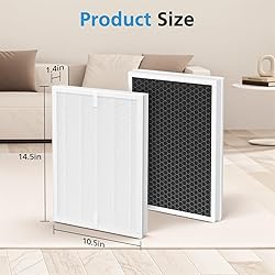 【100% COMPATIBLE MODELS】E-400 Replacement Filter & A7 Replacement Filter are compatible with both VEWIOR ClearAir-A7 Air Purifier and AromaRoom H14 E-400 Air Purifier. The E-400 Replacement Filter & A7 Replacement Filter dimension:10.5"x14.5"x1.4". Please check the models of your machines before placing the order. 【3-STAGE FILTRATION SYSTEM】①High-Efficiency Activated Carbon Filter absorbs cooking smells,smoke,and pet odors. ②H14 True HEPA Filter absorbs pet dander, dust, smoke, pollen, and other particles. ③Fine Preliminary Filter obstructs large particles such as dust, hair, lint, fibers and pet fur to help the air purifier work more efficiently. 【HIGHLY EFFICIENT FILTRATION】This 3-in-1 H14 Grade True HEPA E-400 & A7 Filter Replacement for VEWIOR ClearAir-A7 Air Purifier and AromaRoom H14 E-400 Air Purifier which can efficiently clean 99.7% of odors and fumes, such as smoke, cooking smells, pet odors and VOCs. Release clean air for your home! For optimal performance, it is recommended to replace the filter every 6-12 months. 【HIGH COST PERFORMANCE】Our E-400 Replacement Filter & A7 Replacement Filter feature manufacturer-verified advanced low energy consumption and low-density structure technology for higher efficiency and less pressure, ensuring maximum performance. Package includes 2 packs of E-400 & A7 Replacement Filter. The E-400 & A7 Replacement Filter combination set can meet your needs for for up to two years. 【BUY WITH CONFIDENCE】We value our customers' shopping experience and are committed to doing our best to help every buyer get high-quality functional products. We promise to provide you with 24-hour online Pre-sales/After-sales service to escort your shopping experience. Breathe freely and enjoy a healthy life!