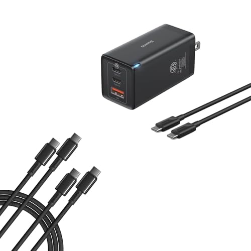 Baseus USB C Cable, 2-Pack 3.3ft 100W 5A Fast Charging USB C to USB C Cable, Zinc Alloy Nylon Braided USB Type C Charger Cable and USB C Charger, 65W USB C Wall Charger