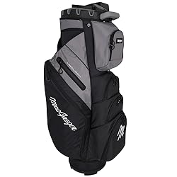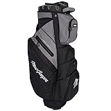 14 WAY ORGANIZER GOLF CART BAG: The 10.5" wide MACLOCK top features a lock for every single iron head, holding them all at exactly the right angle for perfect visibility and organization. There's no rattling around; the clubs sit in place, silently. The 14 way divider system is full length - under the plastic top are 14 full length dividers to stop clubs getting tangled. FEATURE PACKED ORGANIZED GOLF BAG: Velour lined valuables pocket, perfect for your phone and anything else you don't want to get scratched. 2 full length side pockets, designed to take bigger items such as waterproofs. Ball pockets. Glove tab, umbrella sleeve, rain hood and so much more. GOLF BAG WITH DRINKS POCKET: Insulated drinks pouch that takes 2 cans. Large front ball pocket for all the ammo to get you around the course CART STRAP PASS THROUGH: The lift up front pocket allows the golf cart's strap to pass through, keeping access to your pockets and providing a stable anchor for your bag KEY SPECS: 14 way MACLOCK divider top with OS putter well. Full length dividiers. Rain hood included. Bag height: 41". Bag weight: 8lbs