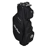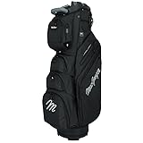 14 WAY ORGANIZER GOLF CART BAG: The 10.5" wide MACLOCK top features a lock for every single iron head, holding them all at exactly the right angle for perfect visibility and organization. There's no rattling around; the clubs sit in place, silently. The 14 way divider system is full length - under the plastic top are 14 full length dividers to stop clubs getting tangled. FEATURE PACKED ORGANIZED GOLF BAG: Velour lined valuables pocket, perfect for your phone and anything else you don't want to get scratched. 2 full length side pockets, designed to take bigger items such as waterproofs. Ball pockets. Glove tab, umbrella sleeve, rain hood and so much more. GOLF BAG WITH DRINKS POCKET: Insulated drinks pouch that takes 2 cans. Large front ball pocket for all the ammo to get you around the course CART STRAP PASS THROUGH: The lift up front pocket allows the golf cart's strap to pass through, keeping access to your pockets and providing a stable anchor for your bag KEY SPECS: 14 way MACLOCK divider top with OS putter well. Full length dividiers. Rain hood included. Bag height: 41". Bag weight: 8lbs