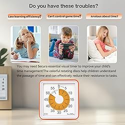 Time Management Tool: The 60-minute visual timer helps develop a sense of time, say goodbye to procrastination, complete tasks efficiently, improve work efficiency, and manage your time like a professional Special Needs: The disappearing orange disc allows people of all ages to intuitively understand the passage of time, and the visual timer provides a calm transition for those with autism, ADHD or other learning disabilities Less Distraction: Just turn the dial clockwise to the desired time to start the countdown without being distracted by additional settings or options, making timer user-friendly for children and adults alike Simple Operation: To turn the timer off-turn it back to "0". Turn off the ringer - The beeping stops automatically after 10s or clockwise to "5" and then quickly back to "0" to turn it off manually Versatile Usage: This timer runs quietly without ticking, which can improve concentration. It can be used as an excellent classroom timer, toddler timer, kids timer, kitchen timer, etc. Requires 2 "AAA" batteries (not included)