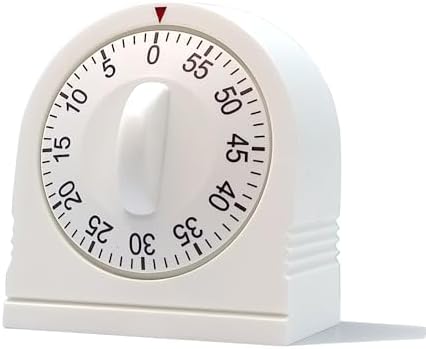 60 Minute Wind Up Timer, Visual Mechanical Timer with Loud Alarm, Manual Countdown Timers for Classroom, Home, Study and Cooking (White)