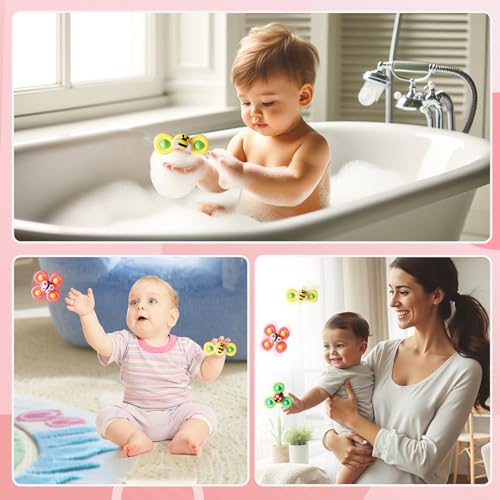 - 【Cute Theme Baby Play Gym】A great theme baby gym play mat, with 4 toys: teapot rattle, teacup rattle, TV rattle, clock rattle and 1 flower mirror, three cute spinners that you can suction to a table for the baby to play with, keep your baby entertained and curious for hours.