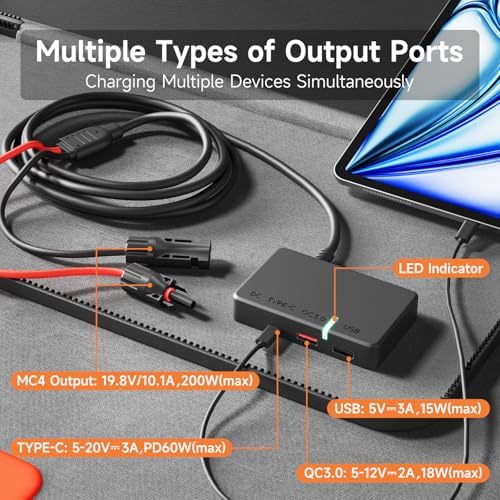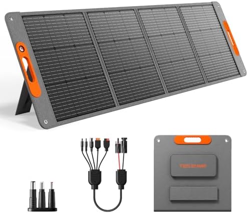 - 【Wide Compatibility, 8-in-1 MC4 Converter】The Twelseaven 200W solar panel features a 5-in-1 MC4 connector cable and 3 DC adapters, making it compatible with most of portable power stations like Jackery, Ecoflow, Bluetti, Flashfish, Anker, and more. With a 9.8ft MC4 connector cable, you enjoy maximum flexibility and effortless connection options for a hassle-free setup.