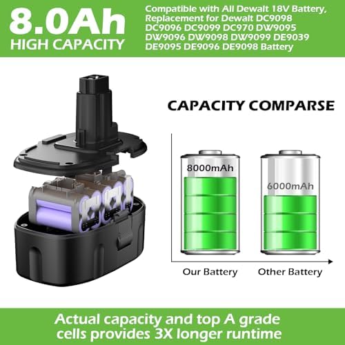 - 🔋【Battery Features 】 Battery type: Lithium-ion | Voltage: 18V | Capacity: 8000mAh High capacity offering long-lasting performance and durability.Compatible with all dewalt 18 volt battery and cordless tools.