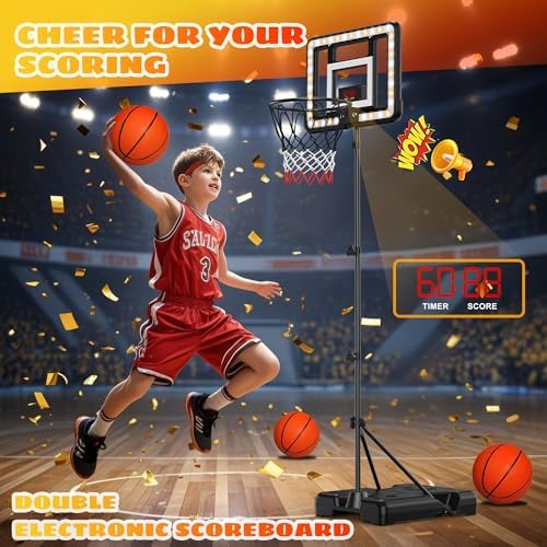 Kids Indoor Basketball Hoop with Scoreboard & Timer,Toddler Adjustable Height Basketball Goal Toy for Outdoor Backyard,Sports Game Play