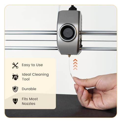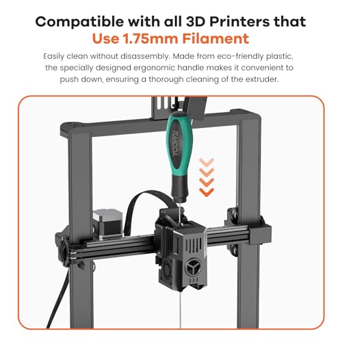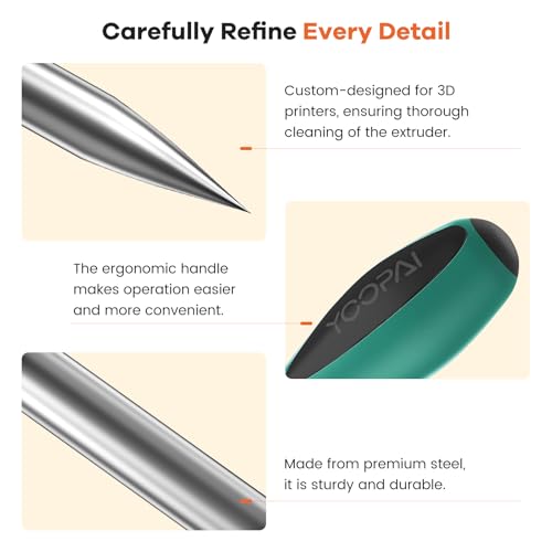 - 【Easy to Use】: The handle is made of soft rubber material, designed ergonomically and fully compatible with the grip method, making it easier to use; The design of the arrow tip blocking the puncture matches the shape of the nozzle end, with a length of 150mm and a diameter of 1.5mm, suitable for 1.75mm 3D printing nozzles; Clean without disassembling the nozzle!