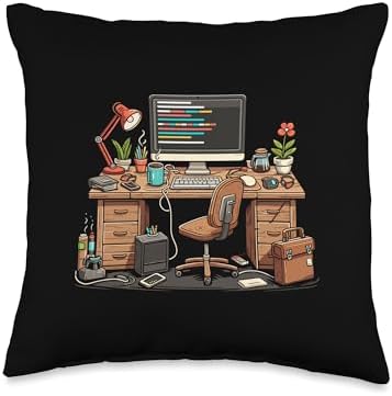Programmer Desk Setup Coding Enthusiast Throw Pillow