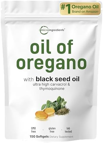 Micro Ingredients Oil of Oregano Softgels Per Serving, 150 Count | 2 in 1 Formulated with Black Seed Oil, 4X Strength Carvacrol & Thymoquinone | Plant Based, Non-GMO & Immune Support