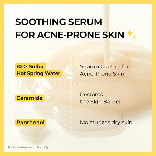 Sulfur Hot Spring Water 82% Soothing Serum with Ceramide, Panthenol, Hyaluronic acid, Hydrating, Glass skin, Non comedogenic, for Dry Skin, Acne-Prone, Korean Skin Care (1.79 fl.oz. 53ml)
