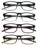 MODFANS Reading Glasses 4 Pack, Blue Light Blocking Readers, Anti Glare, UV Protection, Lightweight Comfortable Unisex Two-Tone Frames with Spring Hinge, Rectangular Design 1.25