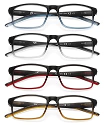 Blue Light Blocker: Blue Light Blocking Reading Glasses effectively resist harmful blue light, reducing visual fatigue, glare, and discomfort caused by mobile phones, tablets, computers, and other digital devices. blue light blocking glasses also block UVA and UVB rays, providing long-term protection against UV damage and keeping your eyes healthy. Versatile and Stylish Design: Featuring spring hinges, reading glasses men adapt to most face and nose shapes, making them suitable for long-term use. The stylish full-frame design brings a modern touch, and the lightweight frame ensures comfort even during extended wear, whether you are at work or in casual settings. High-Definition Professional Lenses: Equipped with professionally calibrated high-definition lenses, these glasses offer a wide range of magnification options from 1.00 to 4.00 (including 1.25, 1.50, 1.75, 2.00, 2.25, 2.50, 2.75, 3.00, 3.50,) to meet various vision needs. The excellent light transmission ensures clear, undistorted vision, eliminating blurry vision. Convenient and Multi-Purpose: This set includes four pairs of Readers, each with a dedicated pouch and a cleaning cloth, allowing you to keep a Eye glasses in your study, car, office, or any other preferred location. Whether you're reading at home, working in the office, or driving, you can enjoy clear and comfortable vision anytime, anywhere. Risk-Free Trial: Customer satisfaction is our top priority, and we strive to provide the best service. If you have any issues with the product, please contact us without hesitation. We will resolve the problem within 12 hours, ensuring a hassle-free shopping experience.